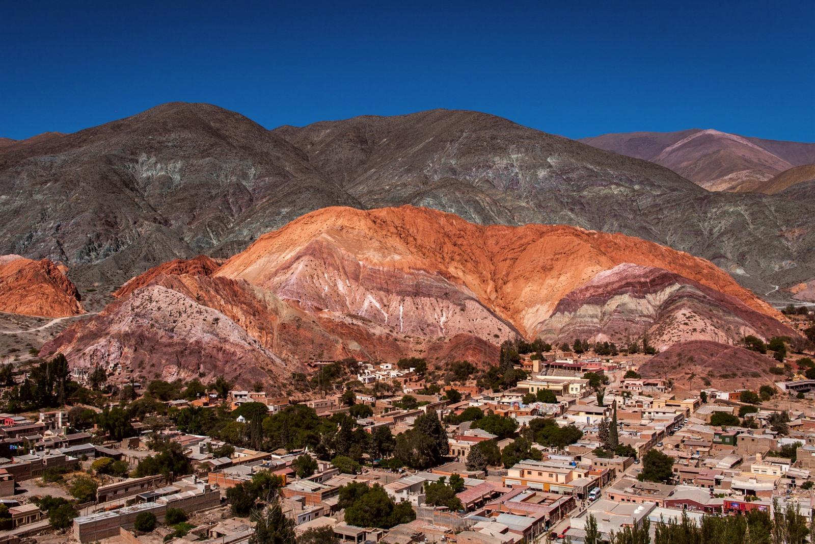 Het dorpje Purmamarca ligt aan de voet van deze kleurrijke reus, met adobehuizen, smalle straatjes en een gezellig plein waar je weefsels, poncho's en aardewerk kan kopen. Het is een plek waar de tijd vertraagt en je heerlijk kan genieten van het lokale leven. De beste plek om de zevenkleurenberg te zien is het korte wandelpad naar Mirador El Porito, net aan het dorp. In 10 minuten sta je boven en kijk je uit op een kleurenpalet dat zo onwerkelijk aanvoelt.