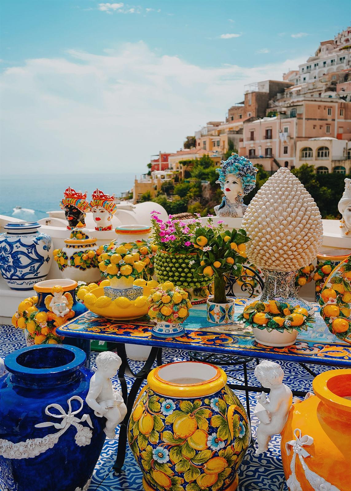 - Shop naar de kleurrijke, Amalfi-keramiek, het bekende parfum Sapori di Positano, Capri Positano-sandalen of zwierige zomeroutfits in Moda Positano-stijl.