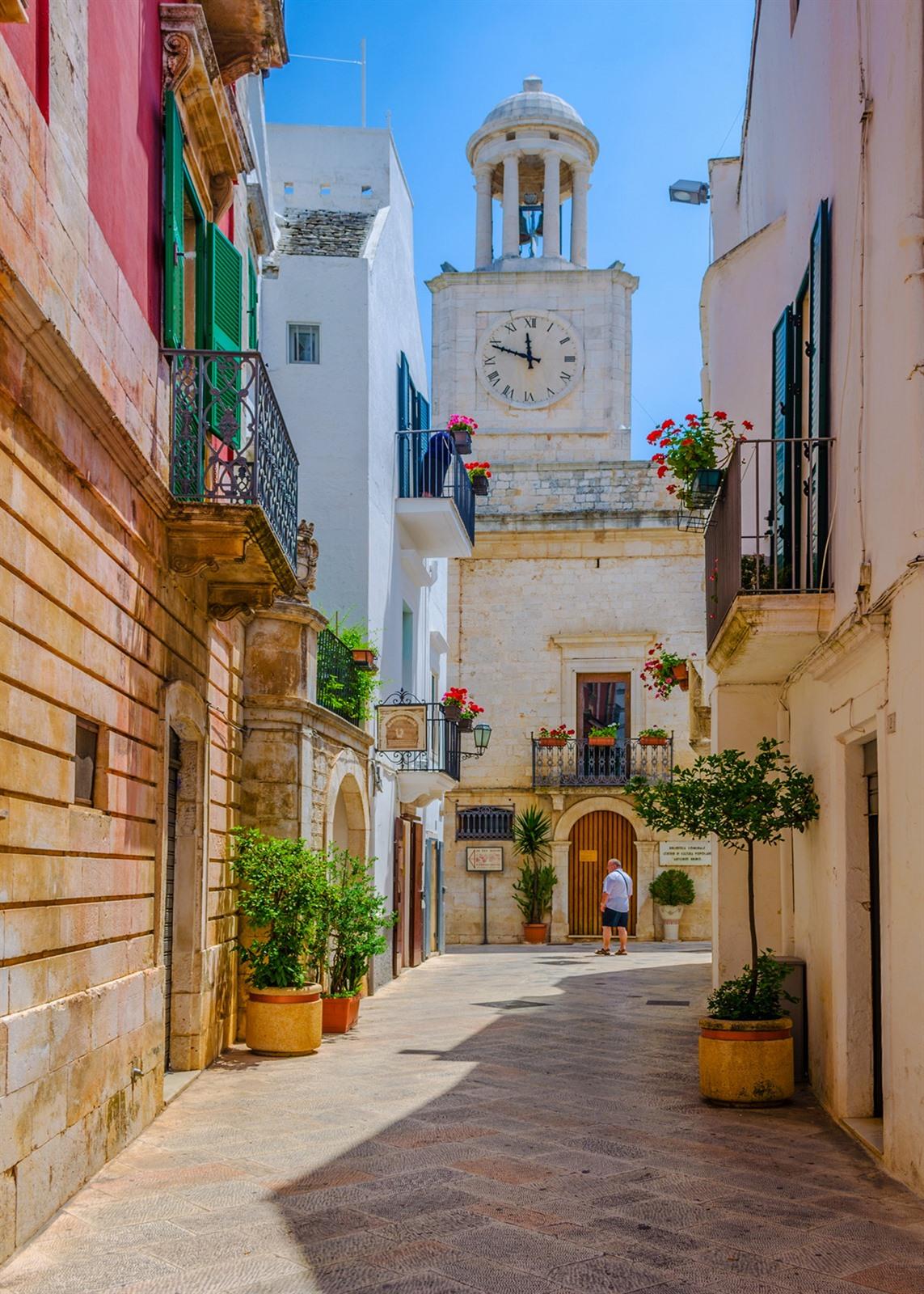 Locorotondo is de tweede populaire stad in de Valle D’Itria en, net als Alberobello, weet ze iedere keer haar bezoekers te betoveren met haar charme. Niet voor niets wordt Locorotondo beschouwd als een van de mooiste dorpjes in Italië. Een charmante oude binnenstad vol witte huisjes, kleine kerken, gezellige pleintjes, de mooiste uitzichten, heerlijke wijnen, bijzondere verblijven in de trulli... Locorotondo is meer dan een bezoekje waard tijdens jouw vakantie in Puglia.