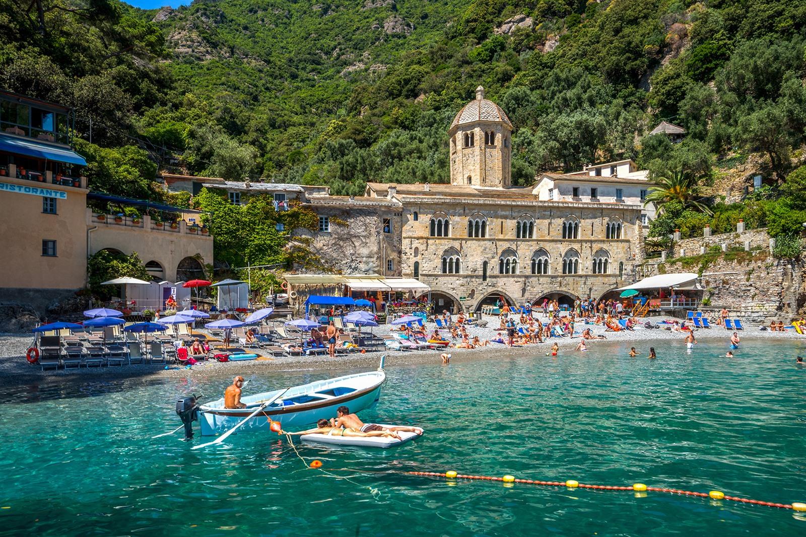 De abdij van San Fruttuoso is een middeleeuws klooster dat letterlijk verstopt ligt in een kleine turquoise baai tussen Portofino en Camogli. Je kan de indrukwekkende abdij niet met de auto bereiken, wel per boot vanuit de haven van Portofino of via een wandeling van ongeveer 2 uur. Er is ook een mooi zandstrand waar je even kan uitrusten alvorens je terugwandelt richting Portofino. Neem dus zeker je zwemspullen mee zodat je een frisse duik kan nemen.