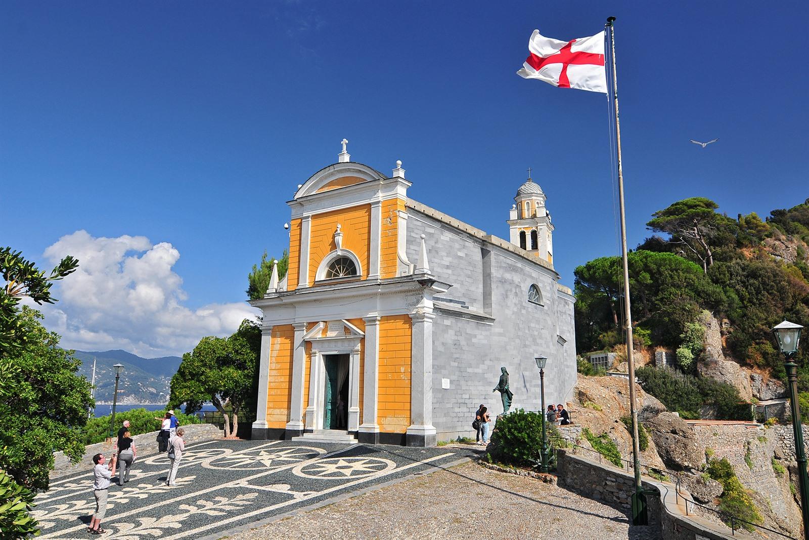 De Chiesa di San Giorgio, gebouwd in de 12de eeuw en gelegen op de kliffen van de landtong boven Portofino, is de kleine maar karaktervolle dorpskerk. Doorheen de eeuwen werd ze meermaals verwoest door oorlogen en telkens opnieuw heropgebouwd. Vandaag de dag kijk je uit op de elegante, warme gele gevel en binnen vind je marmeren vloeren, altaren en enkele bewaard gebleven schilderijen.