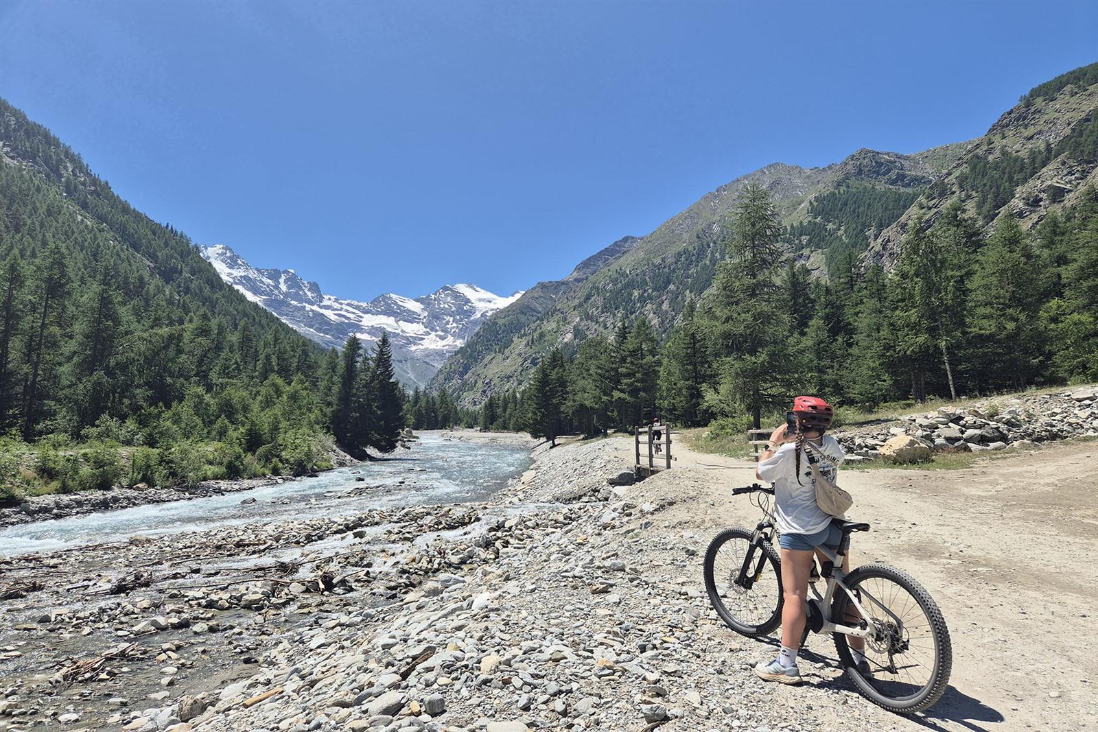 In Cogne kan je naast wandelen ook fietsen door een prachtig decor. Om de steile klimmetjes makkelijker op te geraken, kan je kiezen voor een e-mountainbike. In het centrum van Cogne kan je deze huren bij Sbill’s Bikes. Voor het verhuurkantoor is een parking waar je nog even de versnellingen kan testen en rondjes oefenen voordat je op pad gaat. Opgelet, de paden hier en in de regio worden vaak gedeeld door fietsers en wandelaars, dus rijdt niet te snel op plekken waar ook mensen te voet gaan.