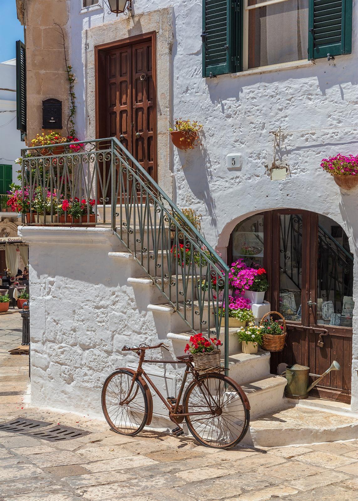 Een doolhof van smalle steegjes met hier en daar mooie doorkijkjes, steile trappen die je naar hogergelegen stadsdelen brengen, witgekalkte huizen met kleine balkonnetjes vol bloemen... dat is wat je je mag voorstellen bij het historische centrum van Ostuni. Je kan hier gerust urenlang rondslenteren, zonder dat je je één moment verveelt. Ook de talloze kleine winkels, verscholen in de vele steegjes, lokken je op bizarre wijze naar binnen. Op zoek naar een leuk souvenir? Dan moet je hier zijn! Van handgemaakte keramiek, tot lokale souvenirs en olijfolie die in de nabije omgeving werd geproduceerd, alles vind je hier.