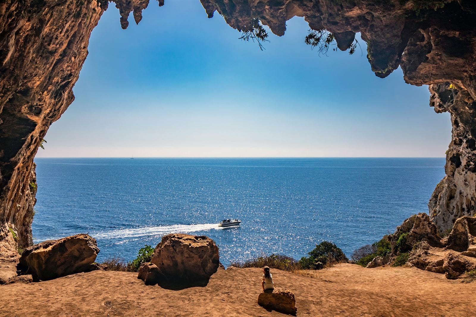 Strand en prehistorische grotten in Canale del Ciolo
