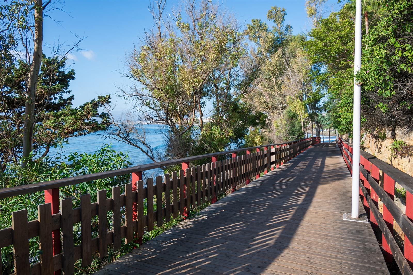 De wandelpromenade, ook wel Paseo Maritimo genoemd, loopt langs Playa de la Rada tot aan de jachthaven van Estepona, bijna drie kilometer lang. Niet alleen kan je hier een mooie avondwandeling maken, men komt hier ook om te sporten of simpelweg te ontspannen op een van de bankjes. Er zijn ook heel wat gezellige terrasjes, chiringuito’s (strandrestaurants) winkeltjes en speeltuinen langs de promenade gevestigd, en de groene tuinen met palmbomen en cactussen zorgen voor wat afwisseling en schaduwrijke plekjes. Ga ook zeker eens naar de Mirador del Carmen, aan het einde van de boulevard. Vanaf de top van dit gebouw heb je een adembenemend panoramisch uitzicht en bij helder weer zelfs uitzicht op Gibraltar en de kustlijn van Marokko.