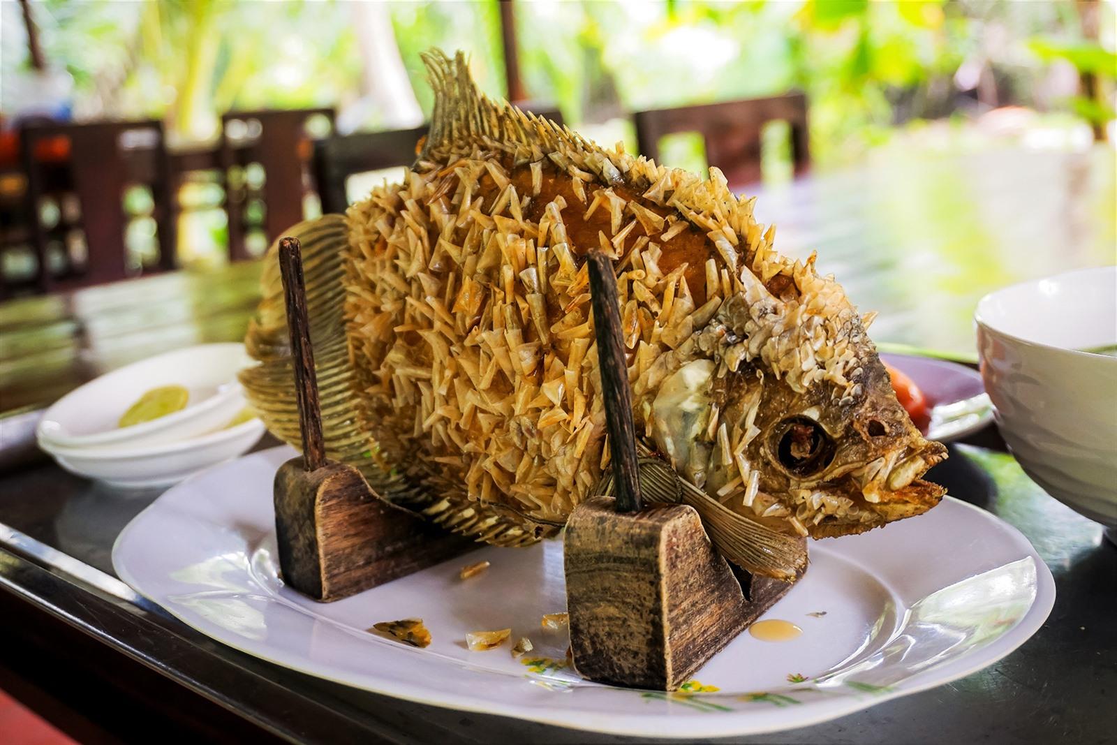 - Wil je graag iets speciaals van de Mekong Delta eten? Probeer dan eens "bun ca", een noedelsoep van vis of de "olifantenorenvis".