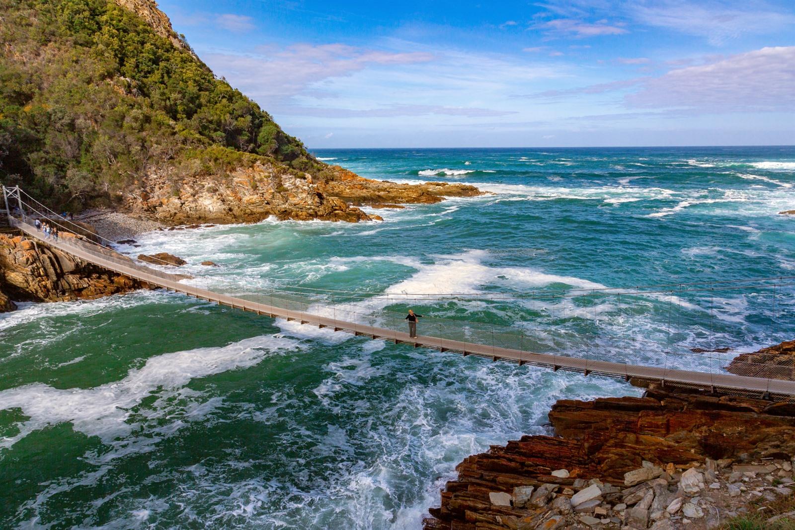 Je eerste halte is het Tsitsikamma National Park, waar de Indische Oceaan woest tegen de kliffen beukt en oude bossen tot aan de kust groeien. Het kleine Storms River Village fungeert als uitvalsbasis voor wandelingen, canopy-tours of de beroemde suspension bridge over de riviermonding. Avonturiers kunnen er ook raften of ziplinen boven het regenwoud. Het is een prachtige plek om de route te starten. Zie ligging